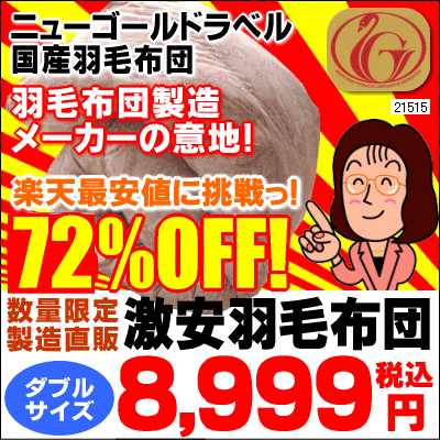 【4時間限定超激安タイムセ?ル】超激安72%OFF!8,999円羽毛布団【ニューゴールドラベル】【日本製】羽毛布団広告掲載店舗【冬インテリアフェア091104】楽天ランキング1位!大特価羽毛布団ダブル
